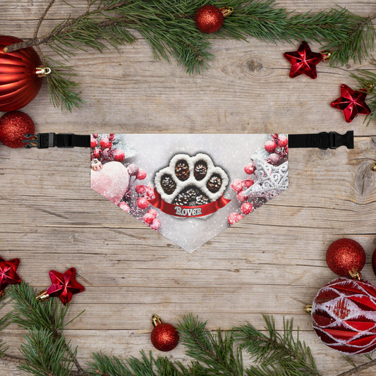 Snow Heart Paw Print Dog Bandana Collar