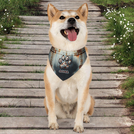 Rusted Metal Paw Print Pet Bandana Collar