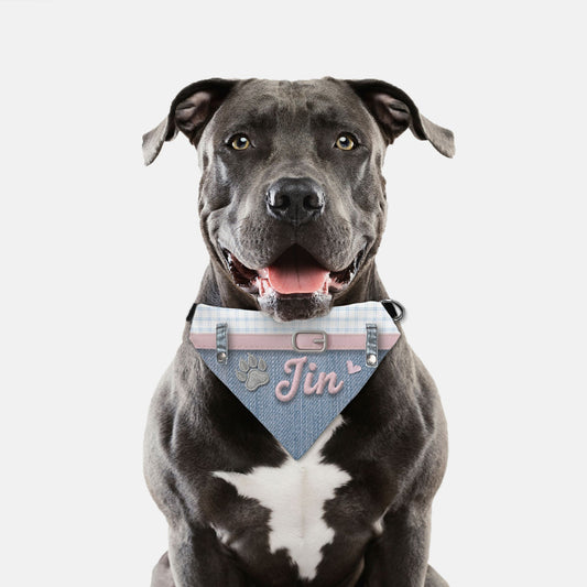 K-Fashion Plaid & Denim Custom Paw Print Bandana Collar