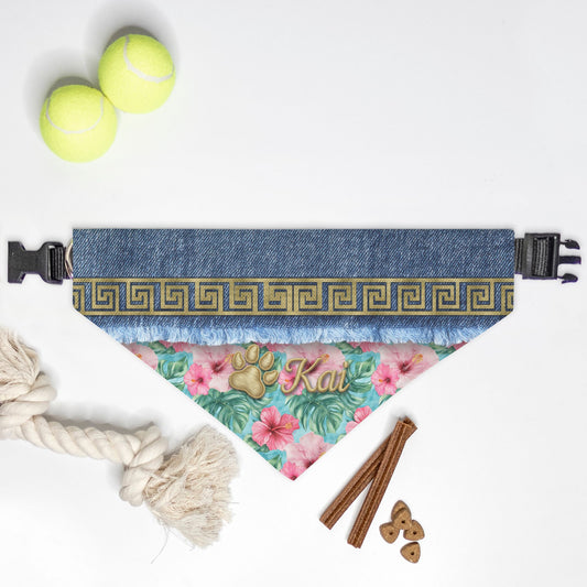 K-Fashion Tropical Floral Custom Paw Print Bandana Collar L