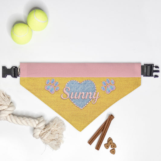K-Fashion Pastel Heart Custom Paw Print Bandana Collar L