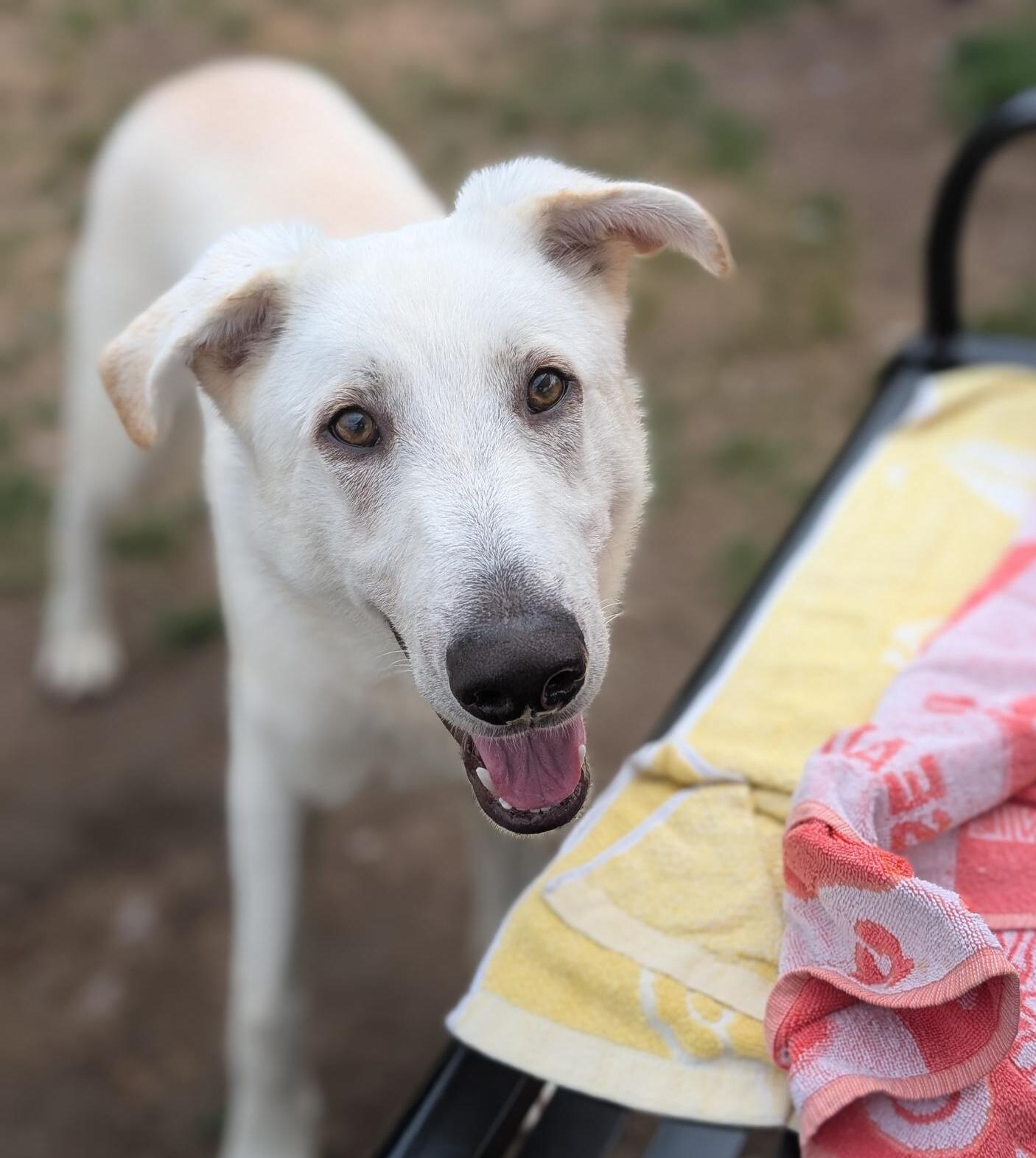 With a snow-white coat and a heart as tender as a magnolia bloom, Georgia is a quiet soul searching for a calm and patient home. The world can feel mighty big to her—new people and places make her nervous—but with slow steps and gentle understanding, she’s learning to trust. Georgia may never be the cuddly type, but she offers a deeper kind of connection: quiet companionship, peaceful presence, and the soft grace of a dog finally feeling safe. If your heart has space for a gentle spirit who blooms in stillness, Georgia may be the one for you.