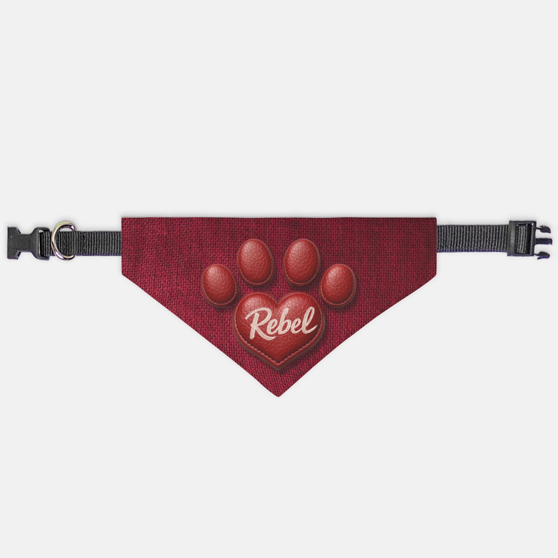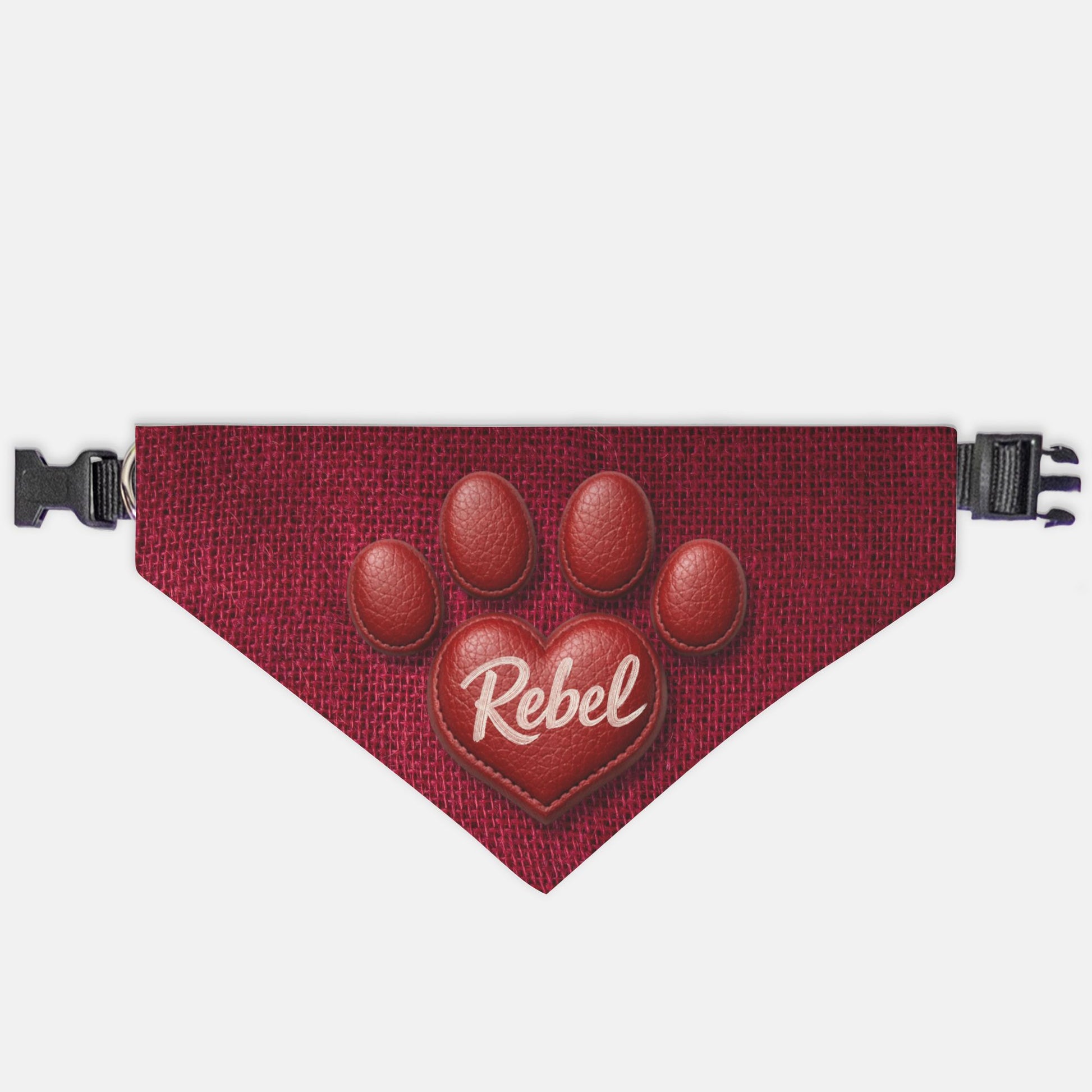 Crimson Leather Heart Custom Paw Print Bandana Collar