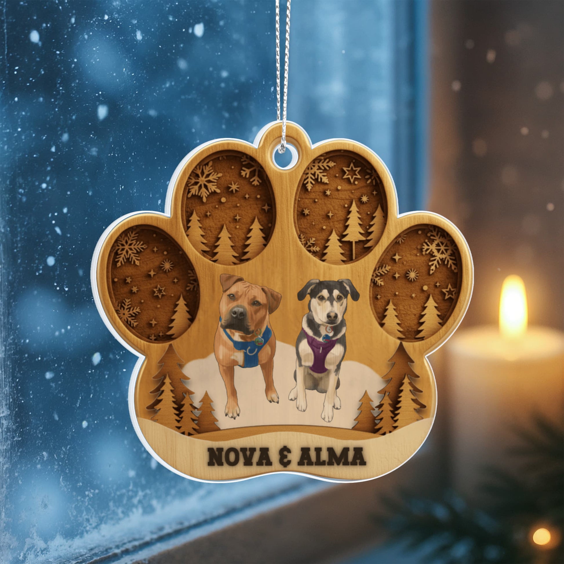 Woodland Cutout Paw Personalized Acrylic Pet Ornament